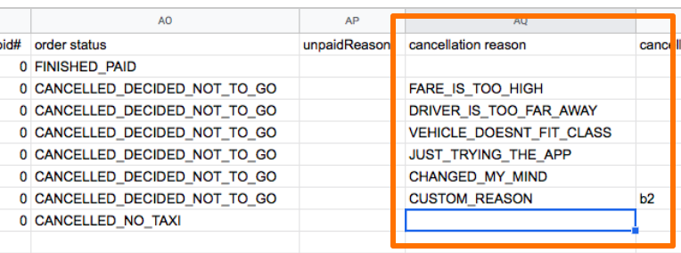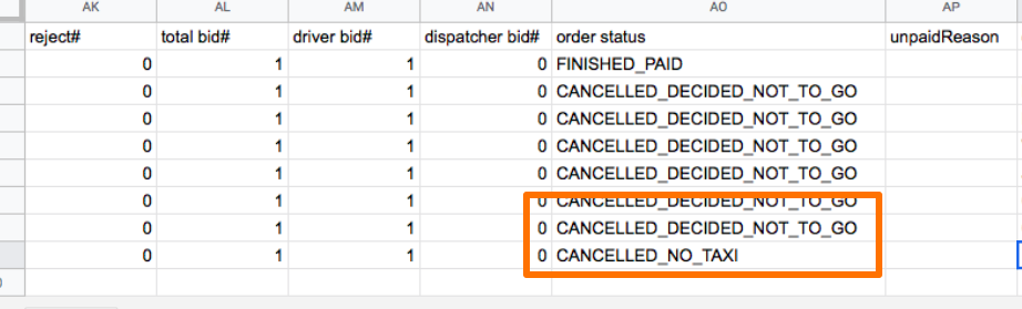 However in the company reports you would find order status for order cancellation by a customer: "Decided not to go" and "No taxi".