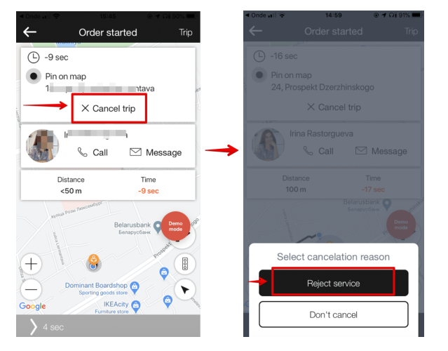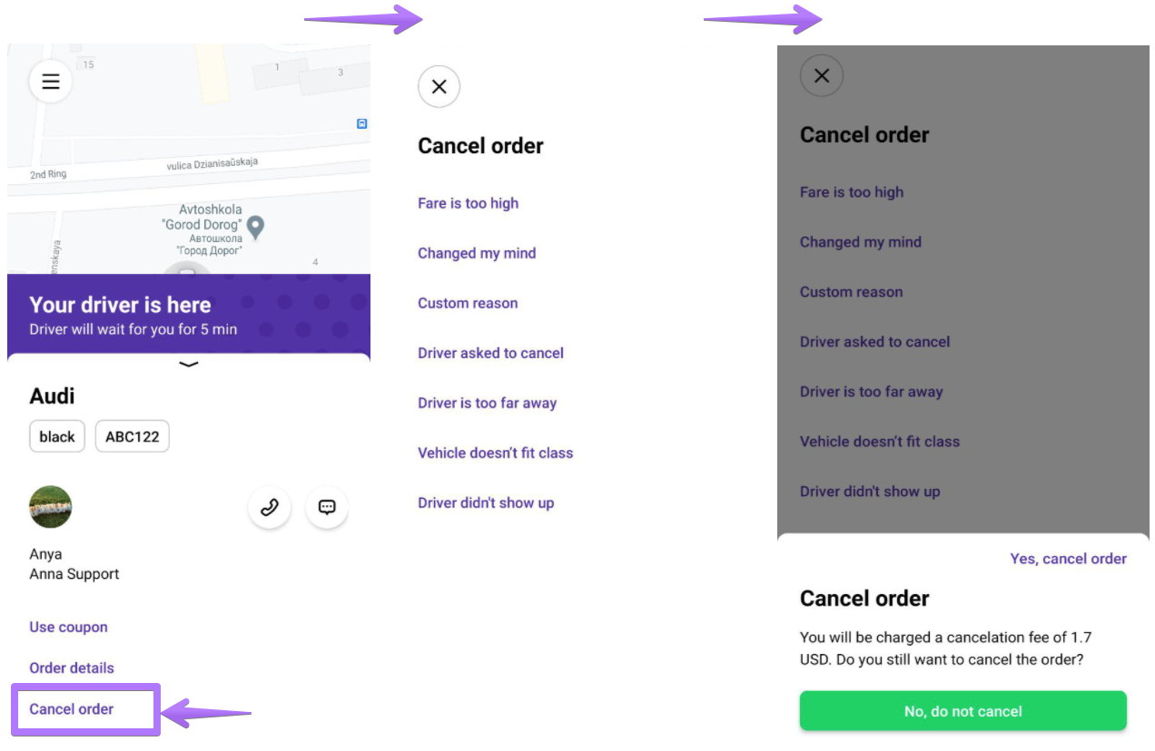 Order cancellations by mistake are brought to a minimum via a step-by step cancellation process for both drivers and customers: