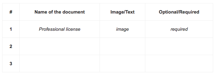 Some countries' authorities have a particular set of documents required from the taxi drivers to operate. If you need any additional fields in the driver app, drop us a message at support@onde.app (for Lolo: support@ridelolo.com). Attach the information according to the format: