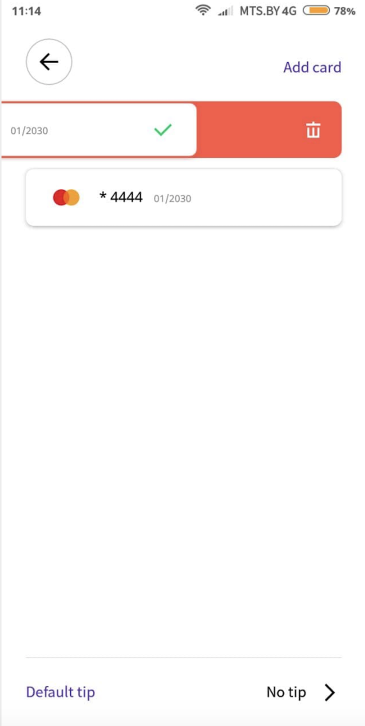Tap on “Add card” and specify valid card credentials. Finalise by selecting “Add card” at the bottom of the screen and, upon validation, the card will be added.