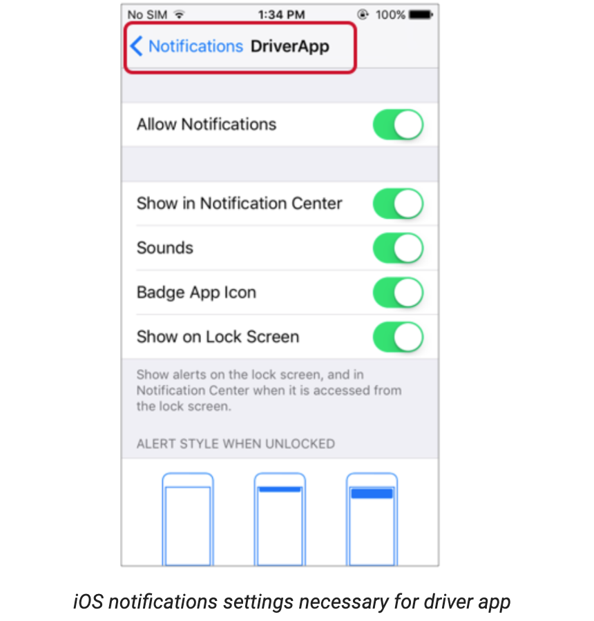 For iOS: Settings - Notifications - DriverApp - Switch all notifications