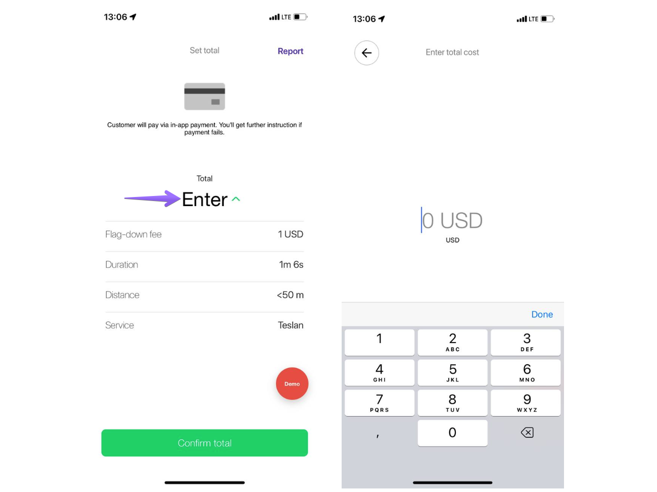 Enabled - trip cost is calculated automatically as per taximeter mode and fee settings