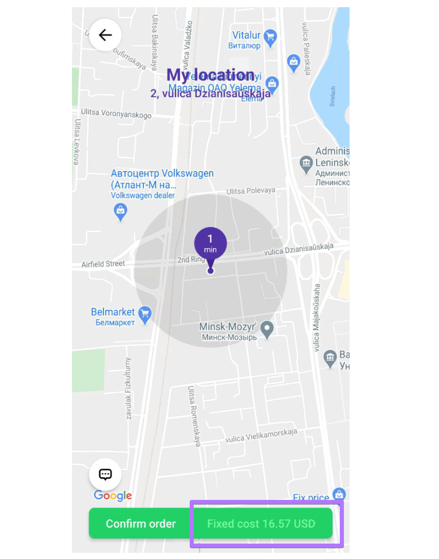 Alternatively, if “Fixed cost” is disabled or no drop-off is added, the trip cost is calculated based on the fee settings calculations. For such services final cost will be calculated as per the actual time and distance on the ride.