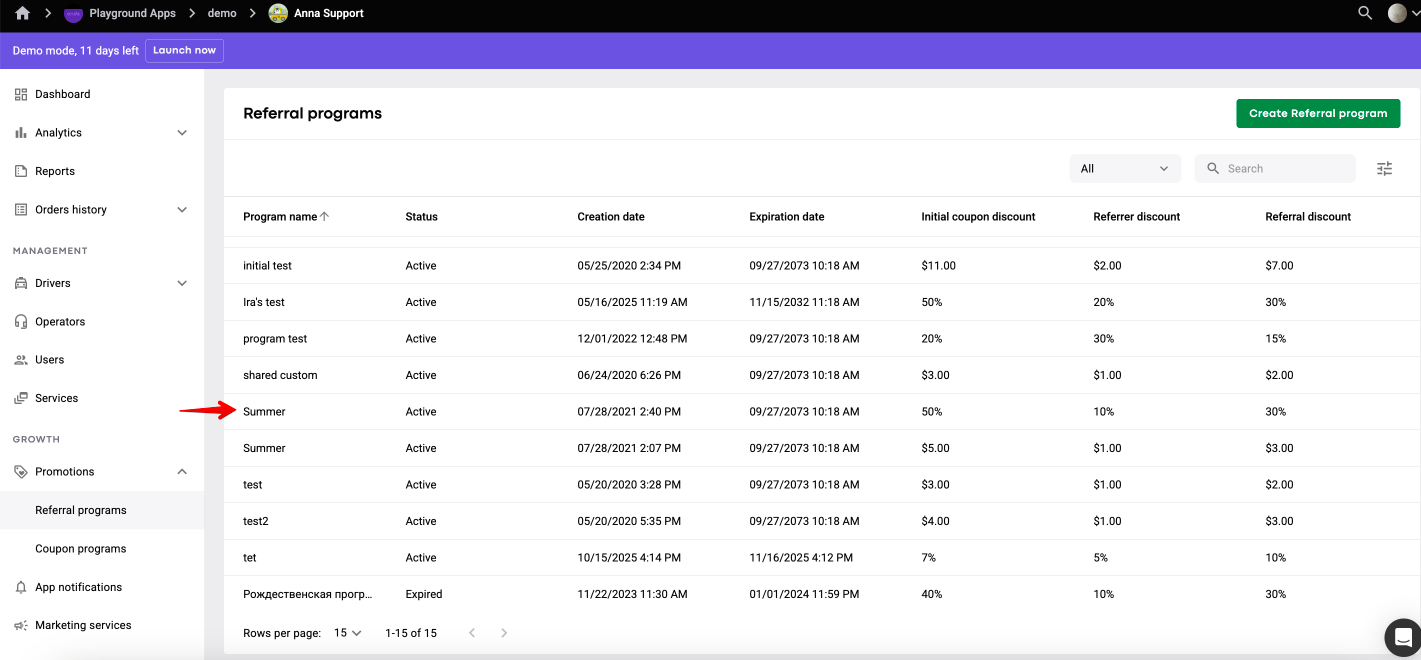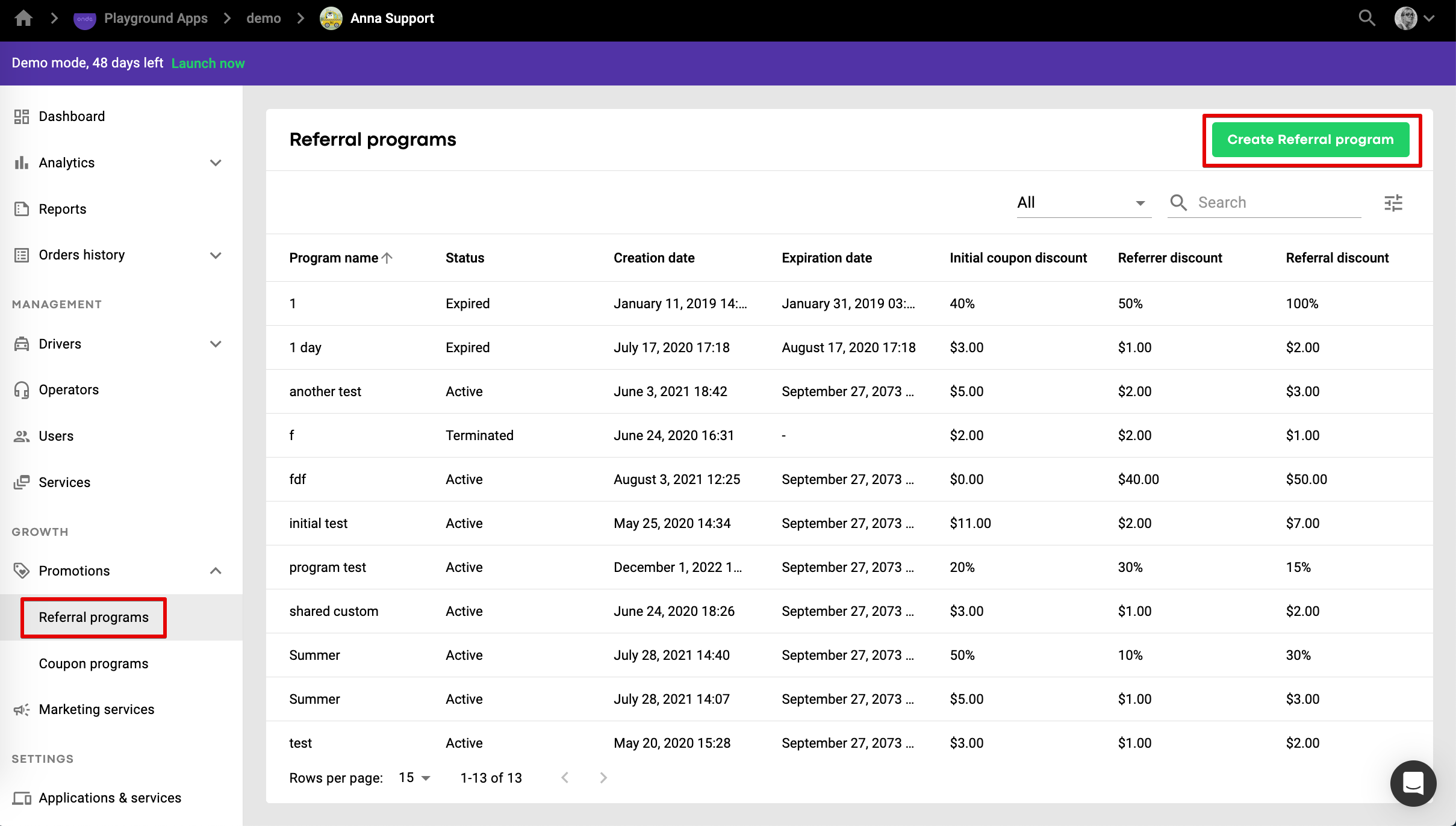 3. Then, go to "Promotions" >> "Referral programs" in the left side menu and click "Create Referral program".
