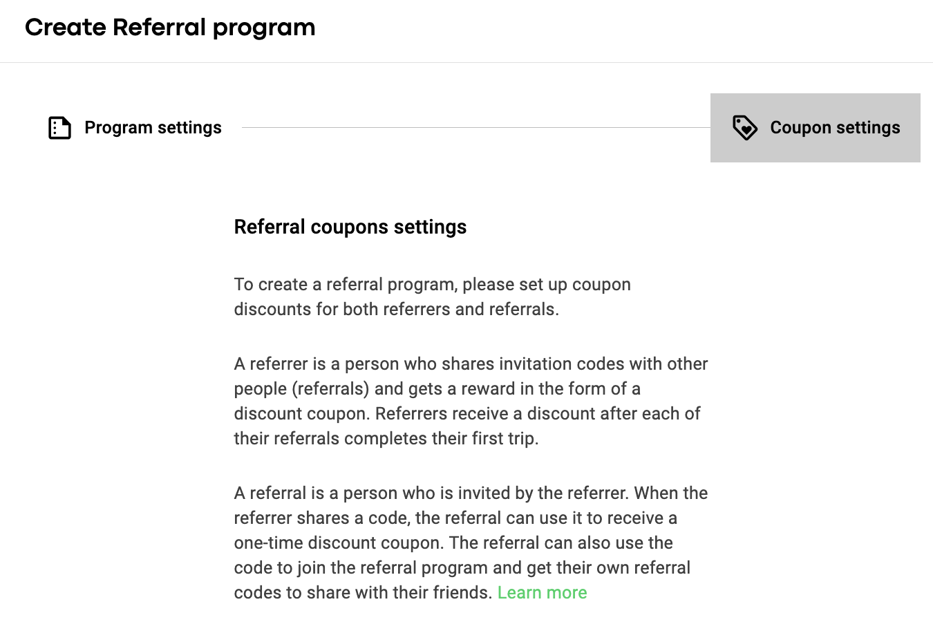 d. Every user can take 2 trips on one coupon code (Orders per coupon = the number of orders that can be discounted with one coupon created under the program)