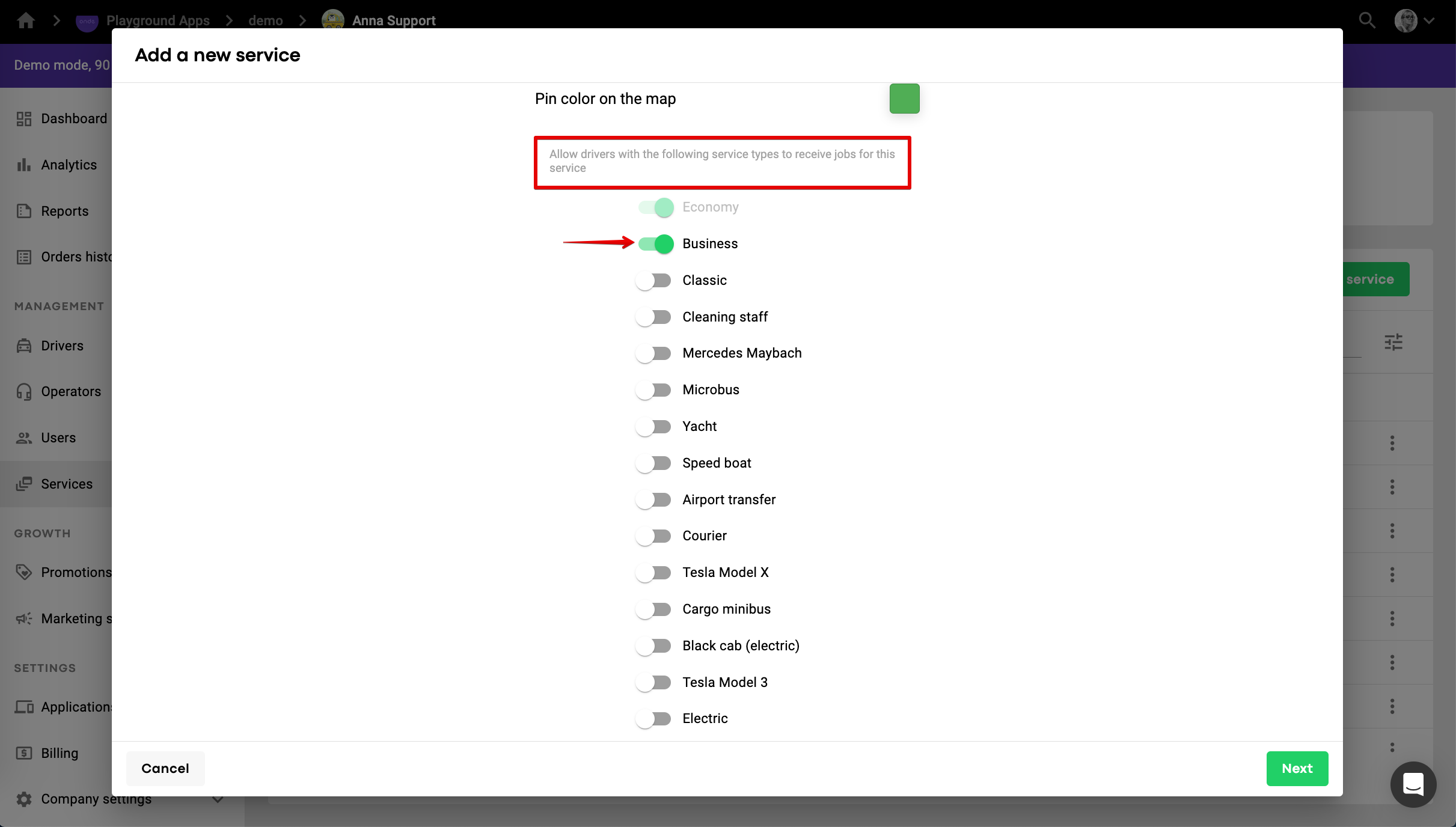 So if you want for Business service to receive orders of the Economy, go to the Economy service and allow Business to work on the rate.