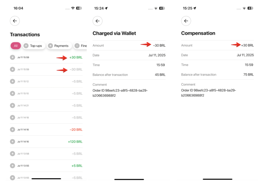 If a cash or terminal order is reported by a driver as unpaid, the debt is not added to the customer’s Wallet. This is to protect the company from possible driver fraud, when the customer has paid the fare, but the driver still reported the order as unpaid.