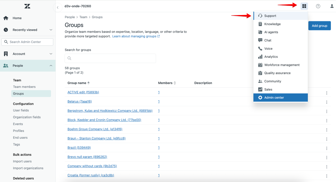 Once Zendesk integration is on, Groups are generated in one’s Zendesk account.