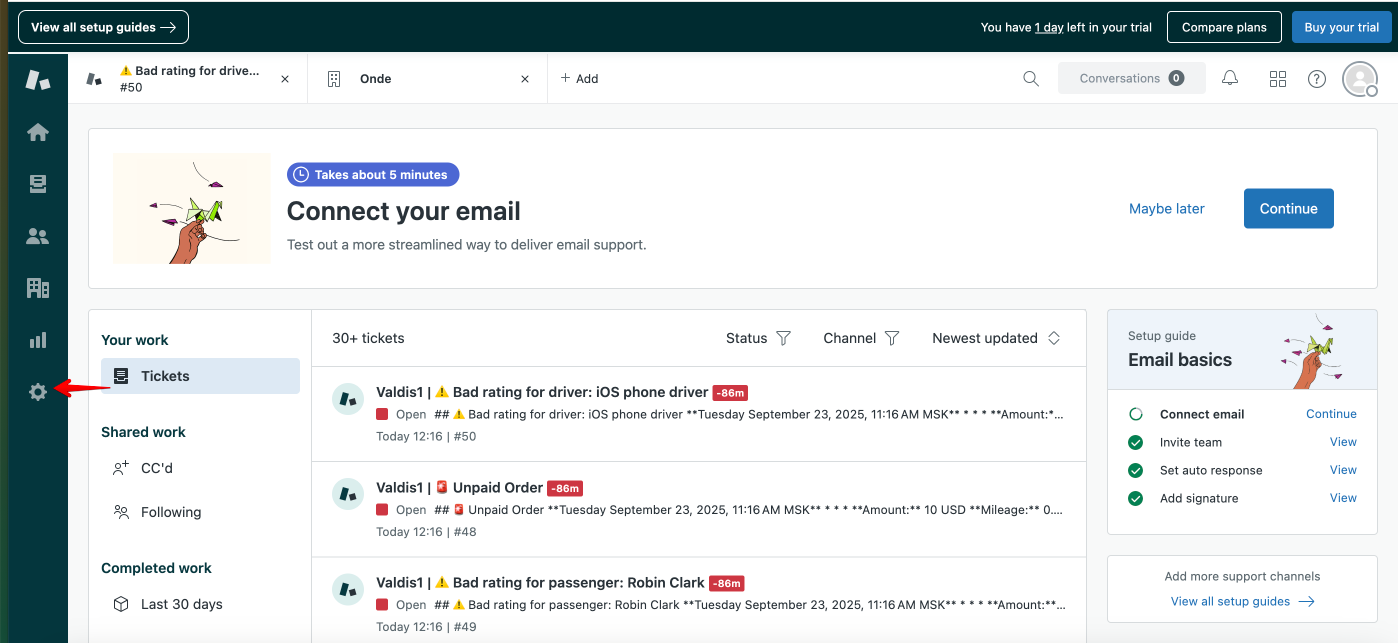 An integration with Zendesk allows a company to collect all customer and driver feedback in one space - their personal Zendesk account.