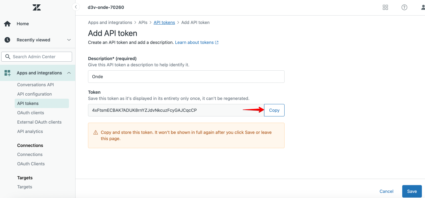 Zendesk API token: