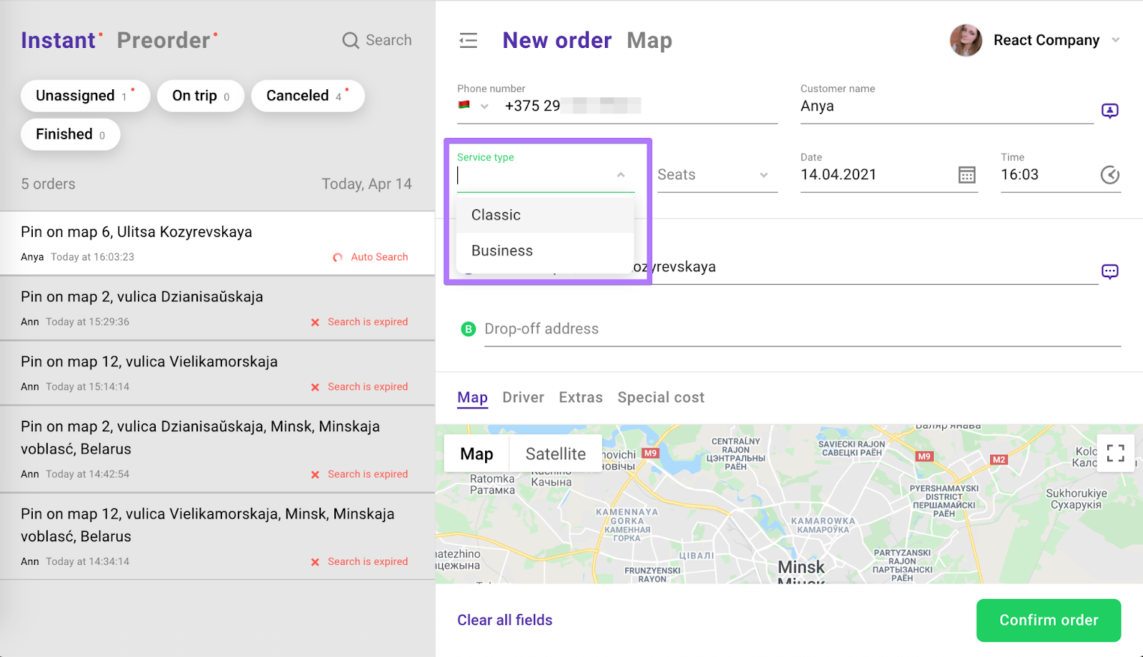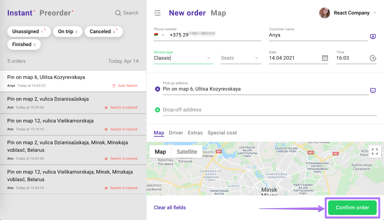 Let’s say a driver cancels the order and an operator needs to duplicate it to send to another driver. Or a customer needs 2 cars to the same pick-up location etc.