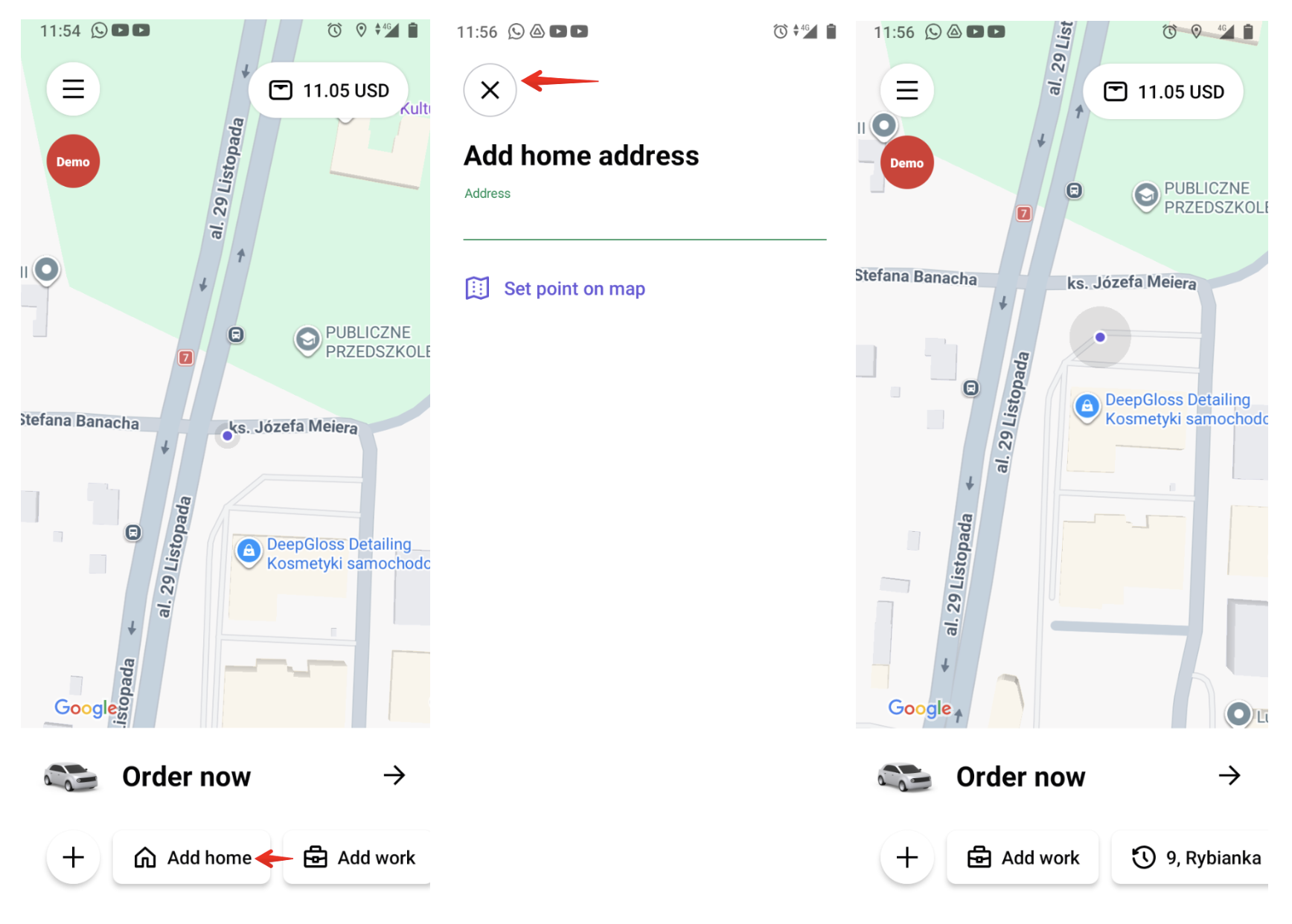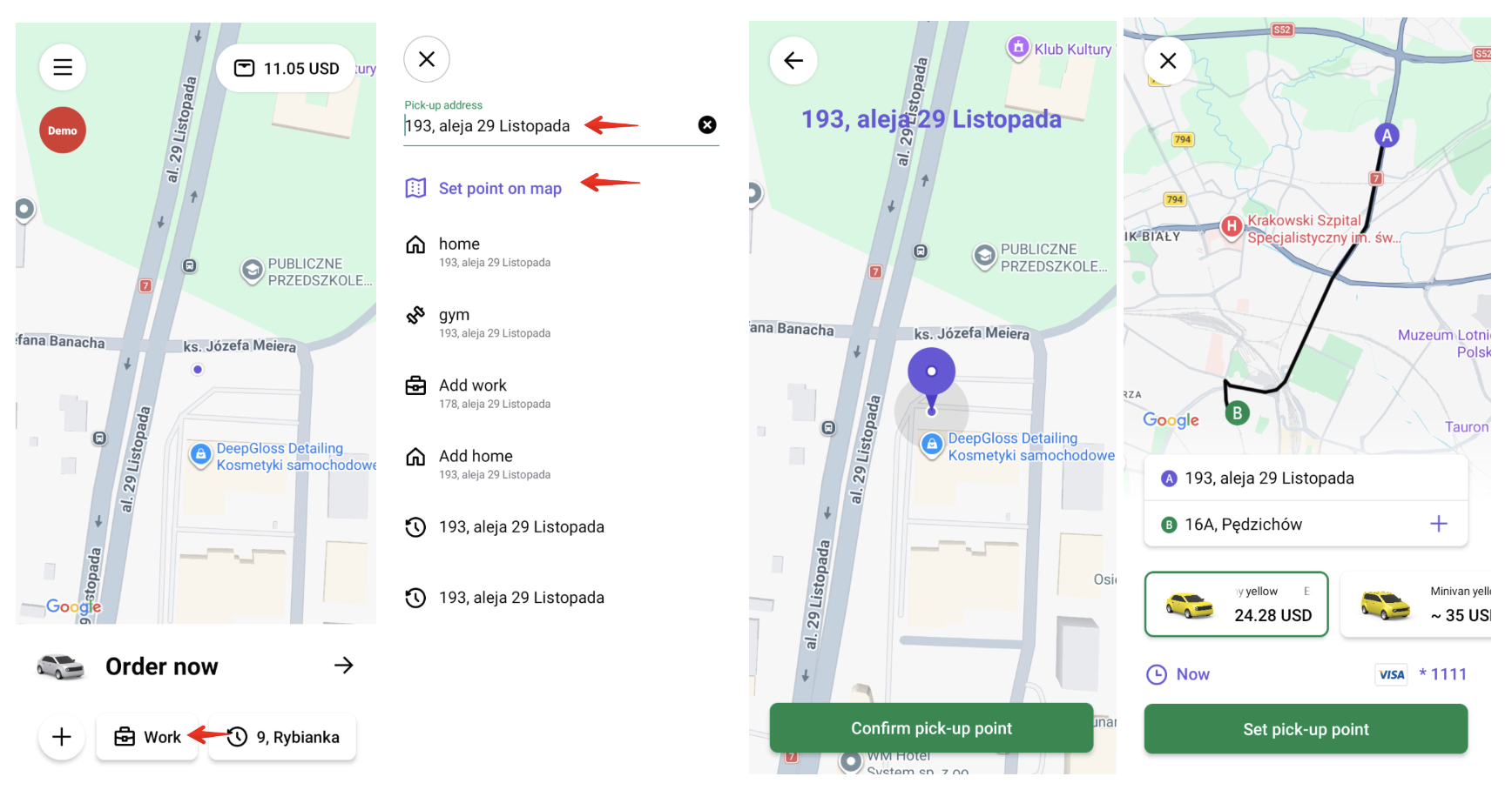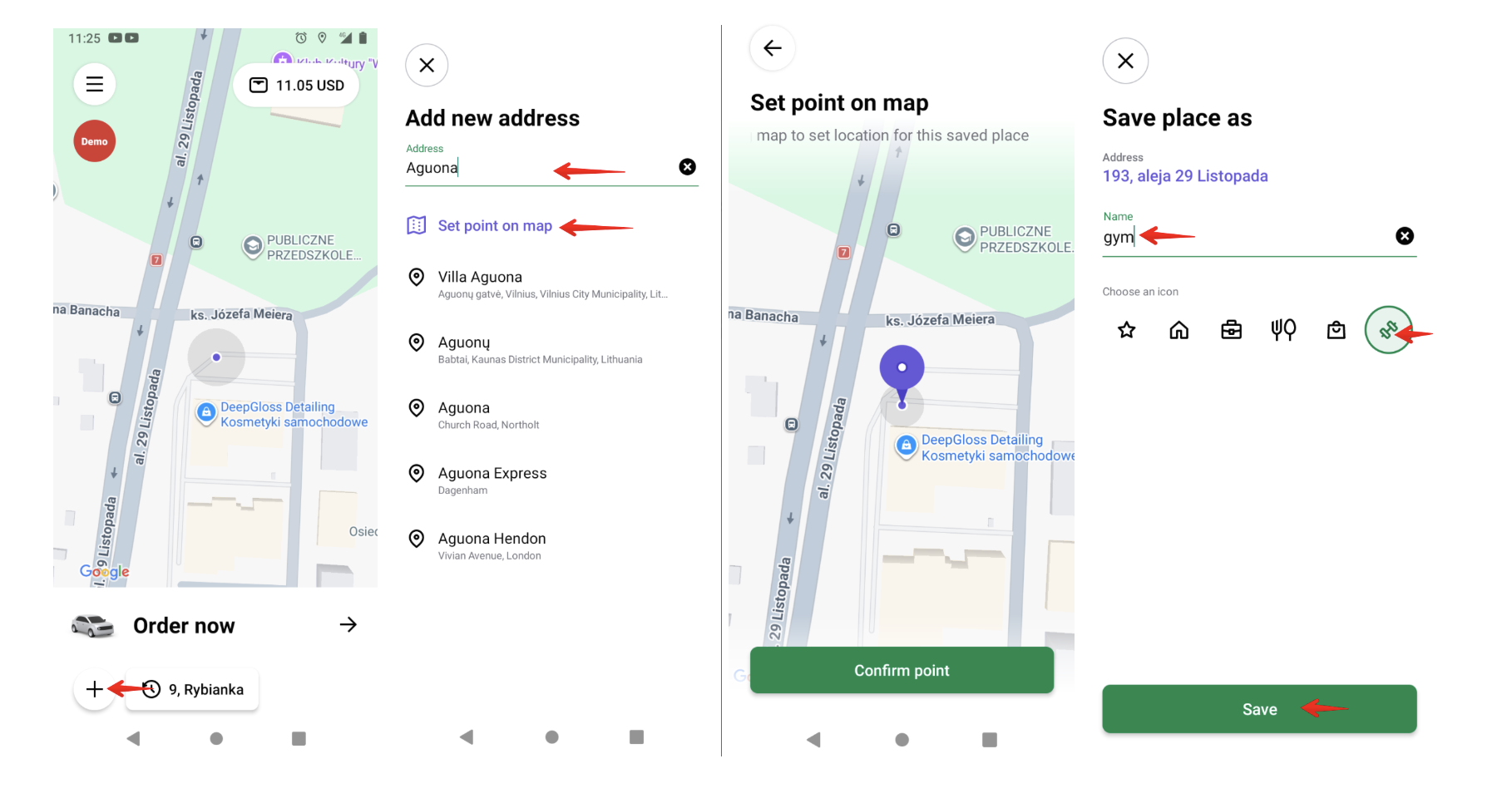 Saved addresses help a customer to order services to the frequently visited destinations much faster.