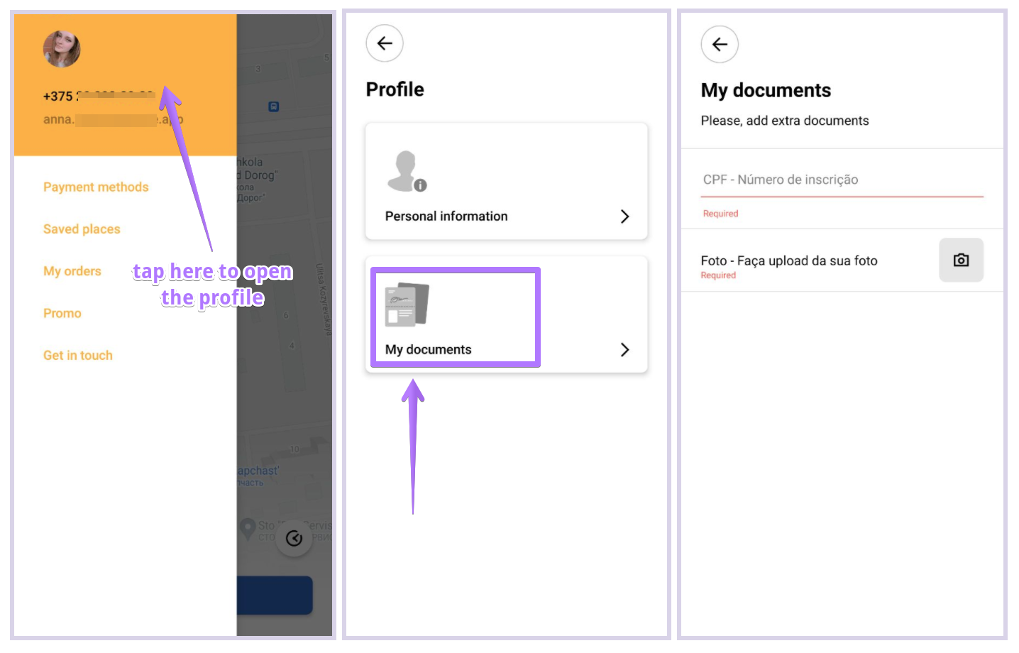 You can specify which customer documents are required for your branded customer app even at the stage of completing сheck lists for the development of your branded apps. Active client may request the configuration of extra documents from support@onde.app (for Lolo: support@ridelolo.com).