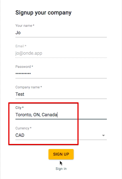 Company currency is set at the stage of registration for a free trial.