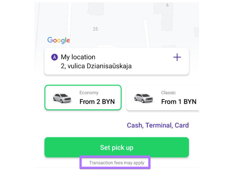Customers are fully aware of the additional transaction fee that will be applied if credit/debit card payment method is chosen to pay for the trip as the fee is displayed: