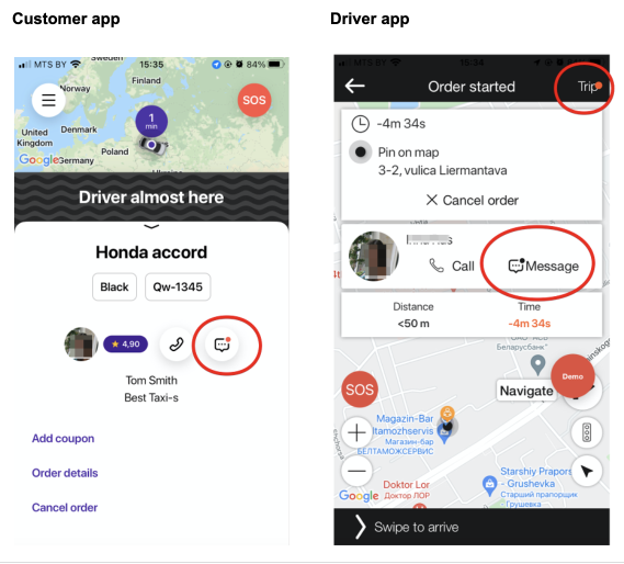 - driver-customer communication is possible even if the parties do not use the apps of the same company