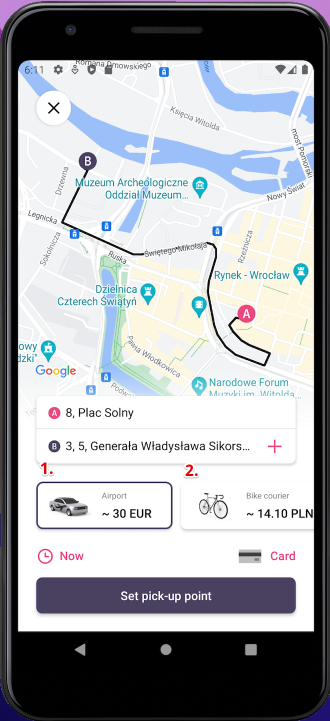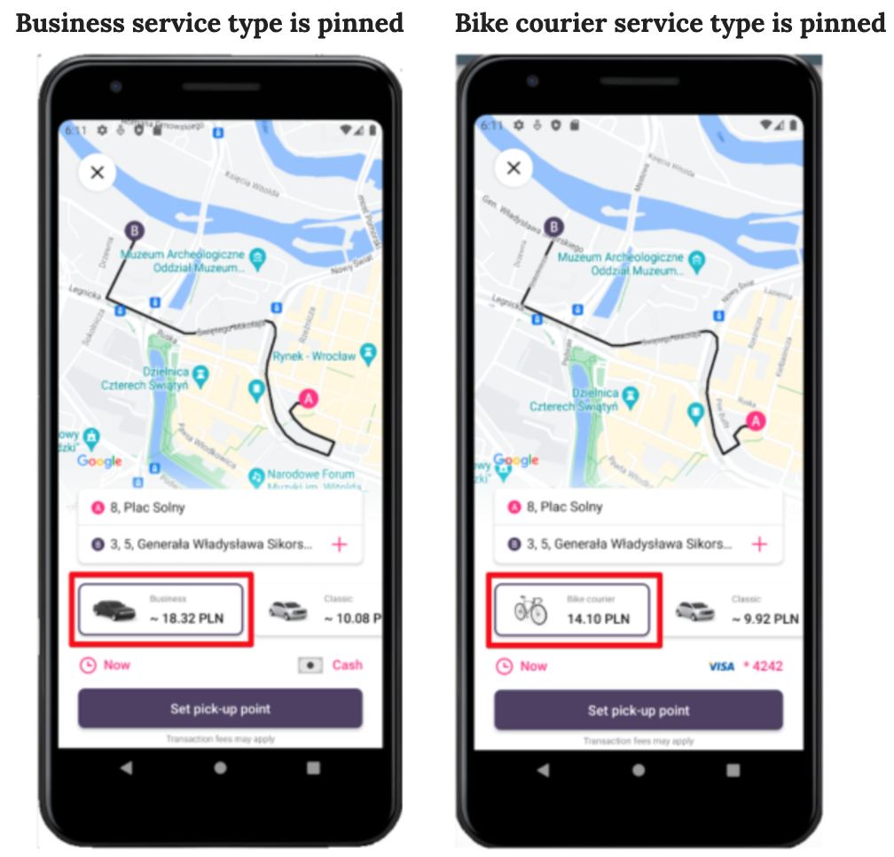 As ride domain service types come first, Airport shows as a first pinned service in the app, while Bike courier comes second.