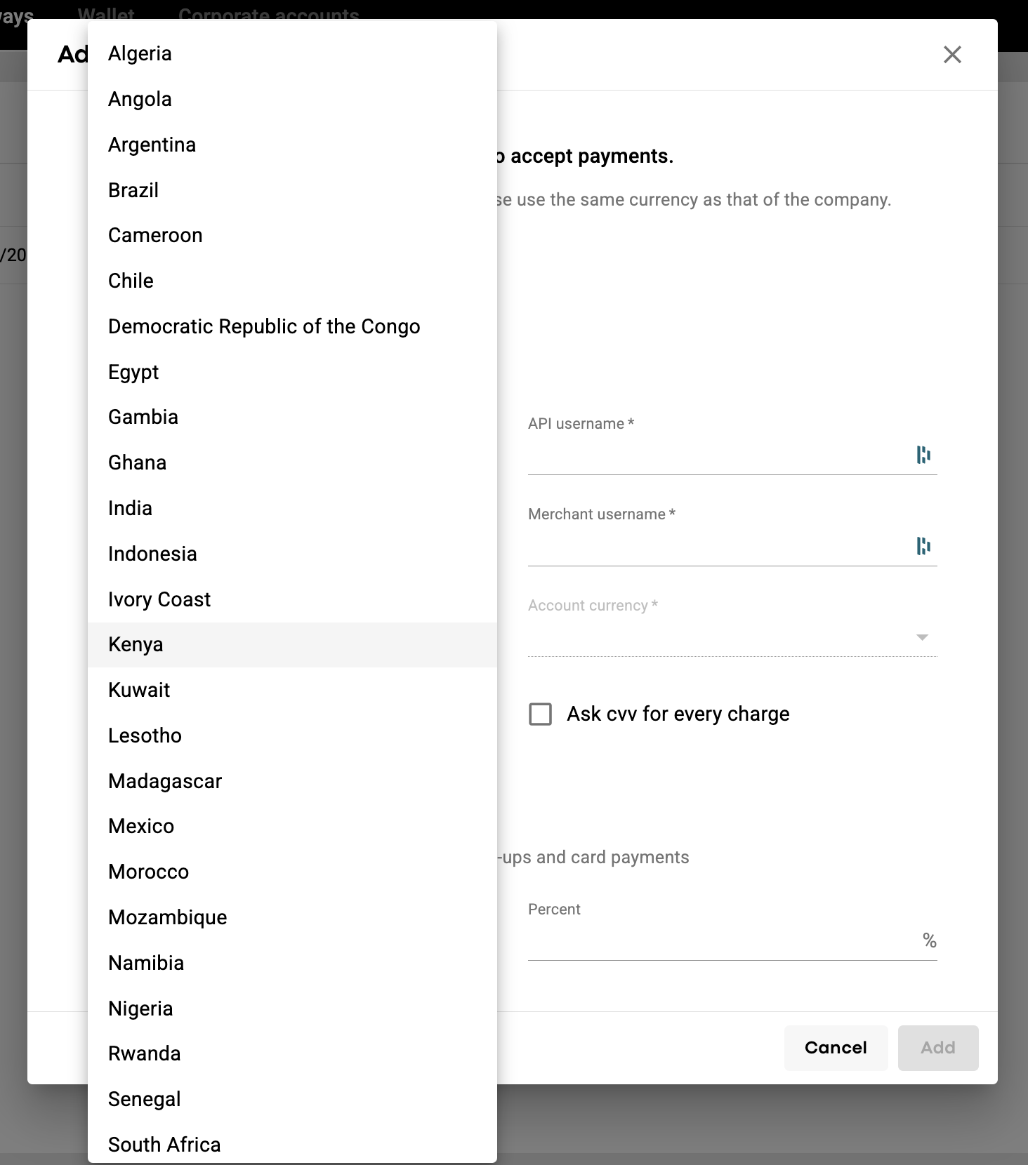 Our platform is integrated with Flocash for processing card payments in the following countries: