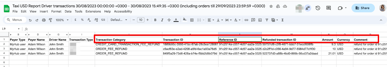 Refunds can be tracked in Drivers transaction report. They can be filtered in Transaction category column. One can also search the transaction by its ID, check Refunded transaction ID, amount of the refund, comment, etc.