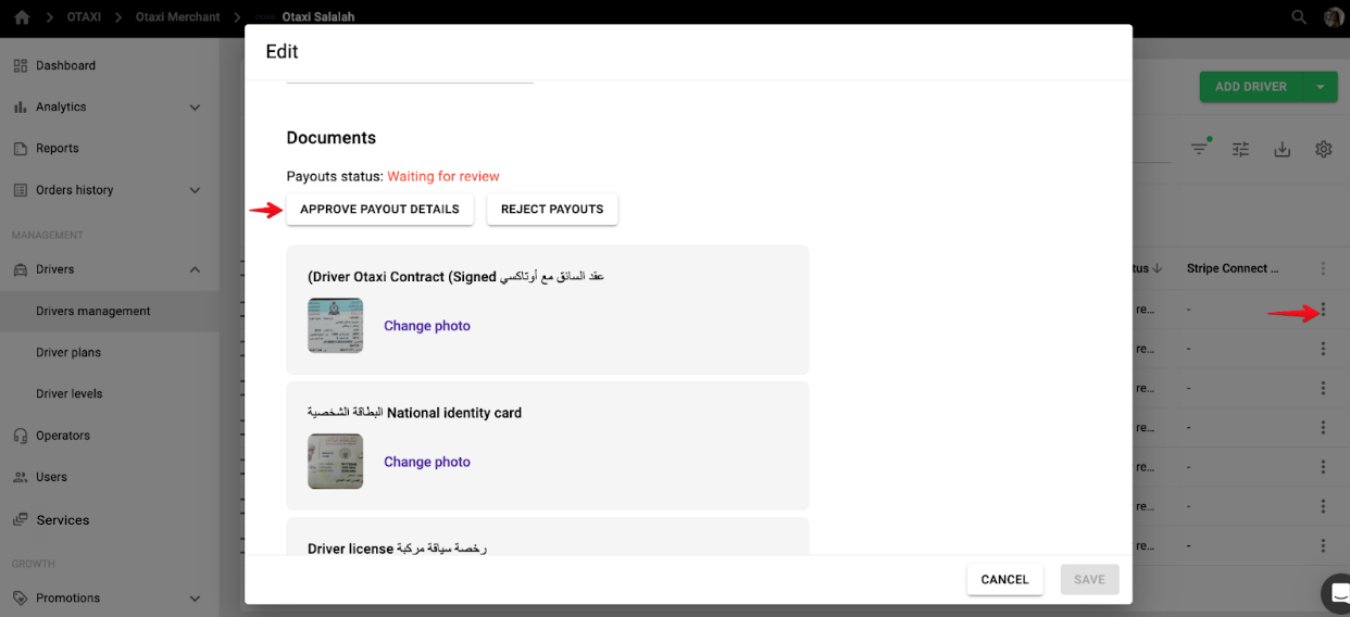 If any data is missing a manager can select “REJECT PAYOUTS”, in which case a driver will have to correct the documents and re apply. Drivers with rejected payout documents will see a corresponding status in "Payout details" tab of their driver app: