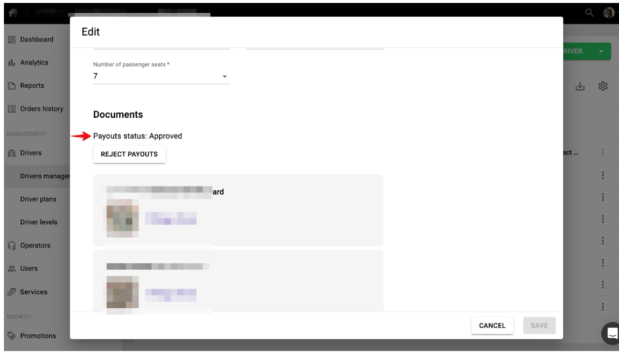1. Driver’s profile “Payout status” = Approved