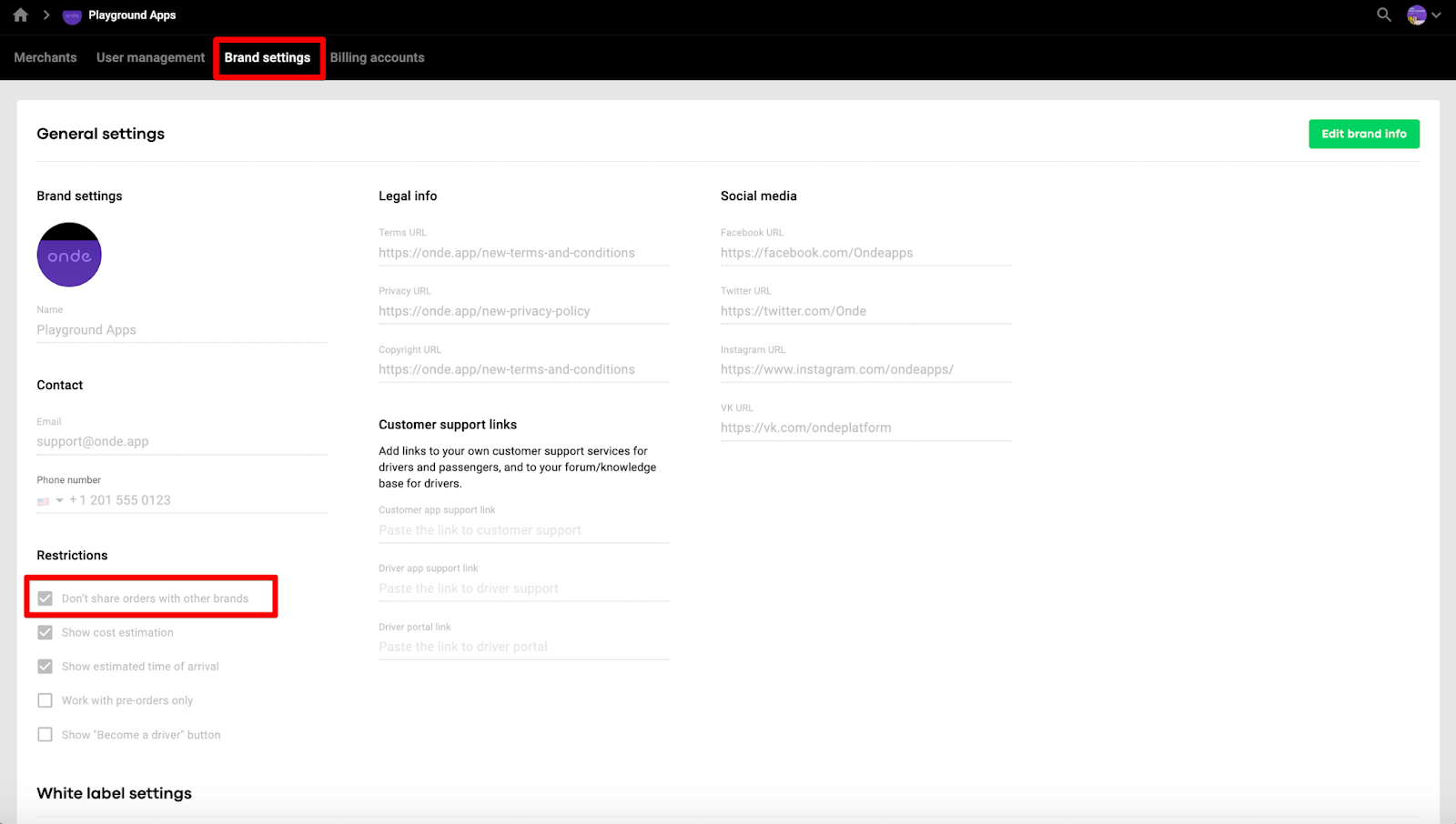 3.In case one does not want the branded app to be used for third-party services, one should select “Don’t share orders with other brands” in Brand settings.