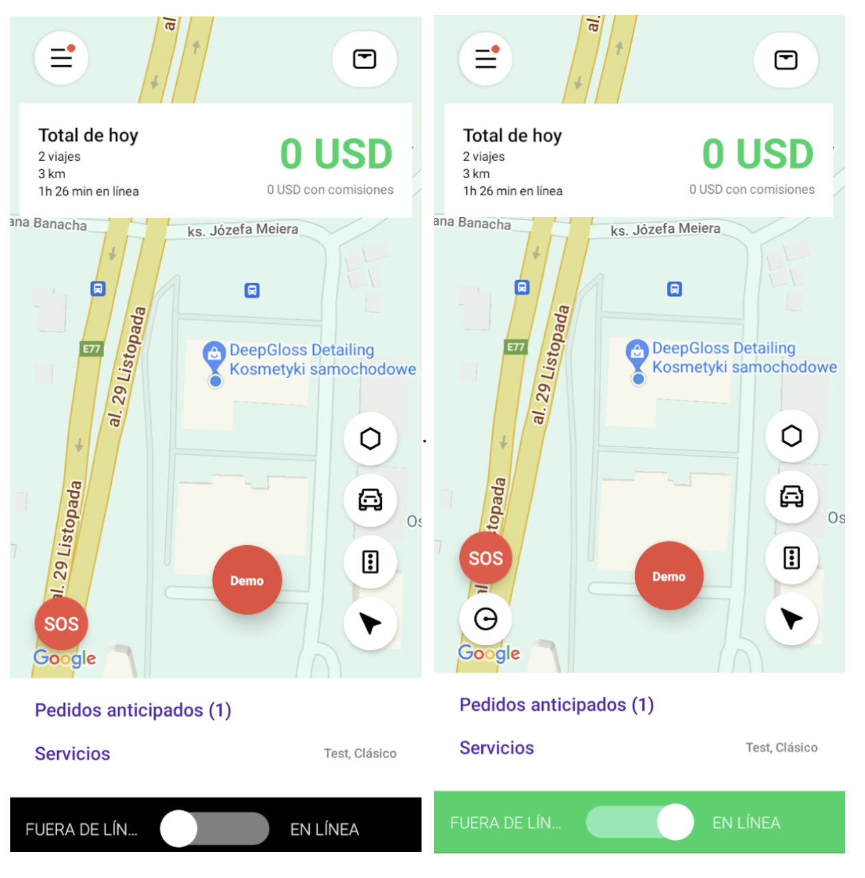 Nota: Según nuestras estadísticas, los conductores exitosos aceptan alrededor del 98% de los trabajos. Cambia al estado "Fuera de línea" si no puedes aceptar pedidos o te has alejado del automóvil, incluso durante 5 minutos.