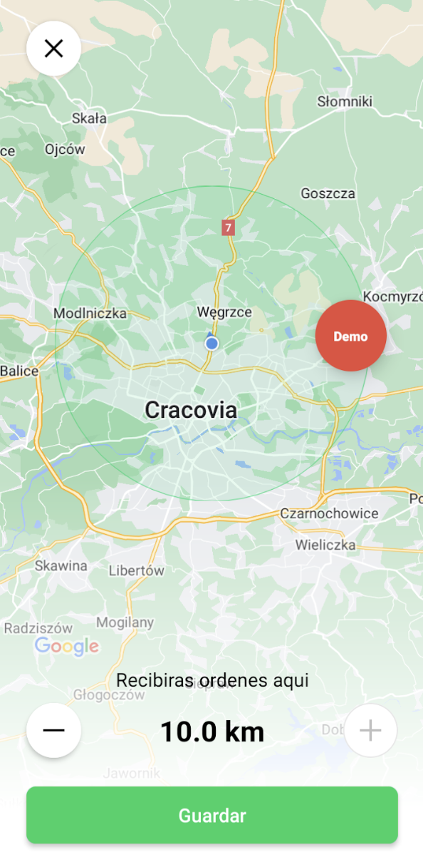 Puedes aceptar trabajos dentro de un área determinada. Elige tu radio de trabajo de entre los botones de selección de radio (+ y -).