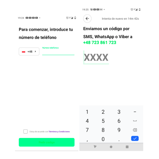 Proporciona tu número de teléfono e ingresa el código de confirmación recibido por SMS.