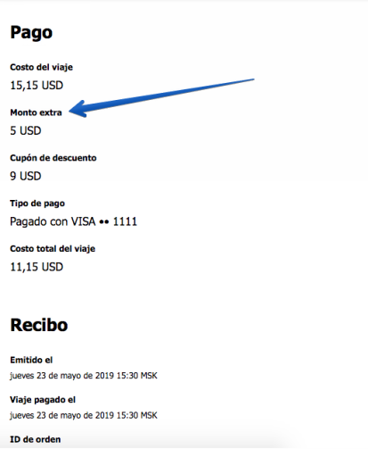 4. Permitir/no permitir que un conductor “Agregue extra” al costo del viaje en el momento de la confirmación del pago final, seleccionando/deseleccionando la casilla “El conductor puede agregar costos extras”. Los gastos adicionales pueden incluir peajes, puentes o tarifas por equipaje extra. El “Costo extra” se registra en el historial de viajes de las aplicaciones Cliente/Conductor, Resumen del viaje, Reporte de órdenes (columna “costo extra”). Ten en cuenta que no hay limitación en la suma permitida en el campo “Agregar extra”, por lo que una empresa debe considerar el riesgo de fraude por parte del conductor y errores humanos al activar la opción.