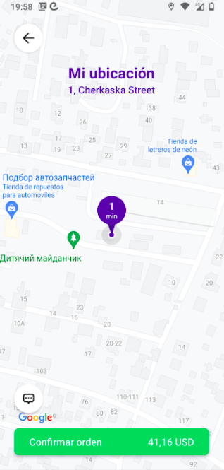 Alternativamente, si “Costo fijo” está deshabilitado o no se ha añadido una dirección de entrega, el costo del viaje se calcula en base a los cálculos de la configuración de tarifas. Para tales servicios, el costo final se calculará según el tiempo y la distancia real del viaje.