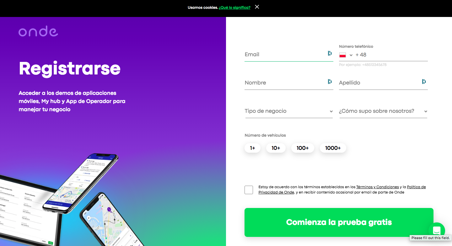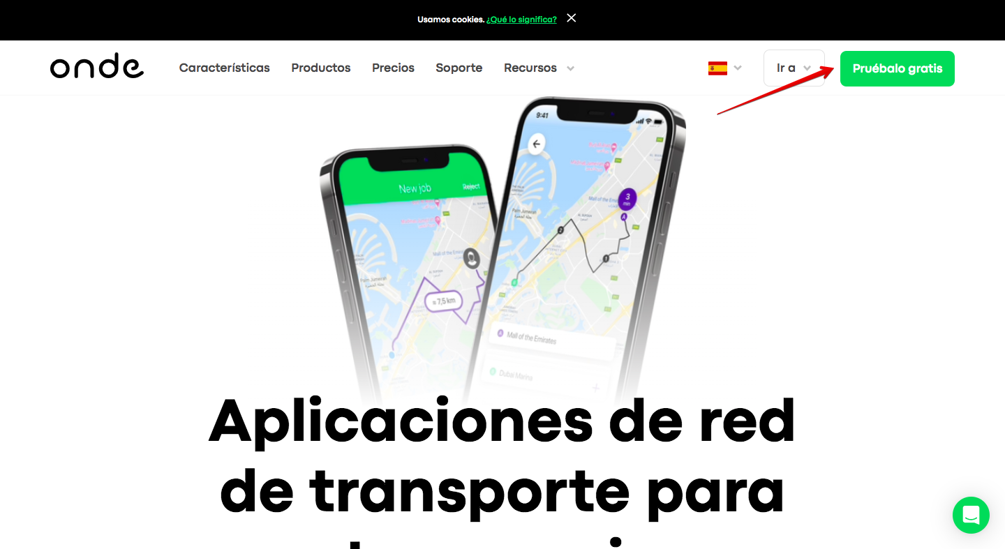 1. Abre el sitio web https://onde.app/es/ y selecciona "Probar gratis"