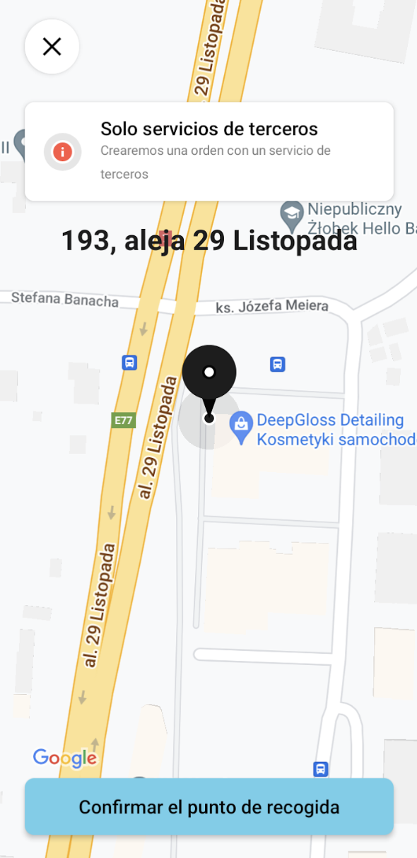 El mensaje "Solo servicios de terceros" aparecerá en la aplicación si un cliente tuyo viaja fuera del área operativa de tu empresa y hay otras empresas que trabajan en nuestra plataforma en esta área (el artículo que describe el área operativa está aquí). Algunos clientes piensan que esto interfiere con el negocio, mientras que en realidad: