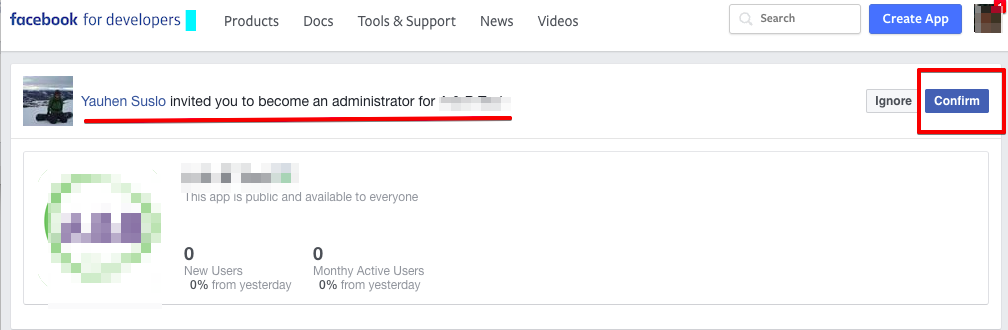 5. La siguiente página mostrará una invitación para convertirte en administrador de tus aplicaciones que debes "Confirmar".