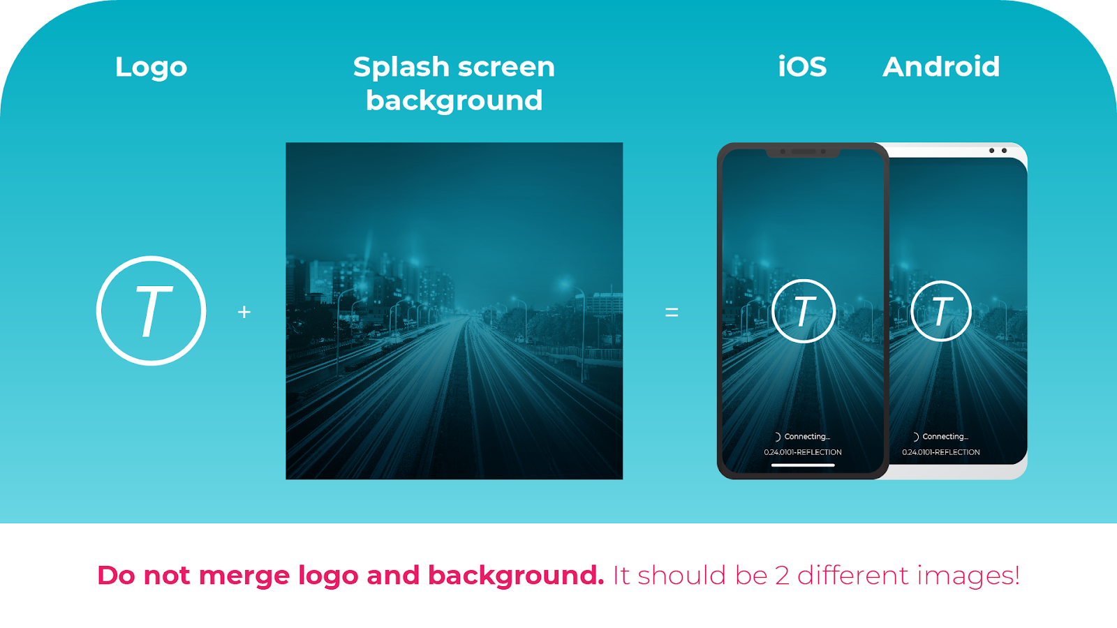 Para preparar la pantalla de inicio (pantalla de inicio de la aplicación), necesitamos una imagen de fondo para tu logotipo. Se deben cumplir los siguientes criterios: