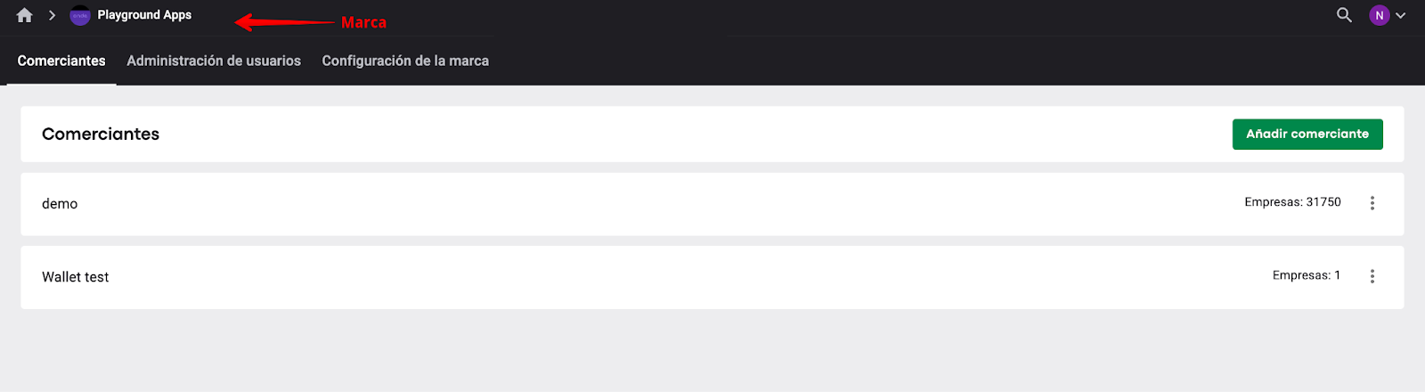 Una Marca puede necesitar varios Comerciantes si opera a escala global con Empresas en diferentes países y moneda propia para cada empresa. Se recomienda que las empresas vinculadas a una moneda se agreguen a un Comerciante.