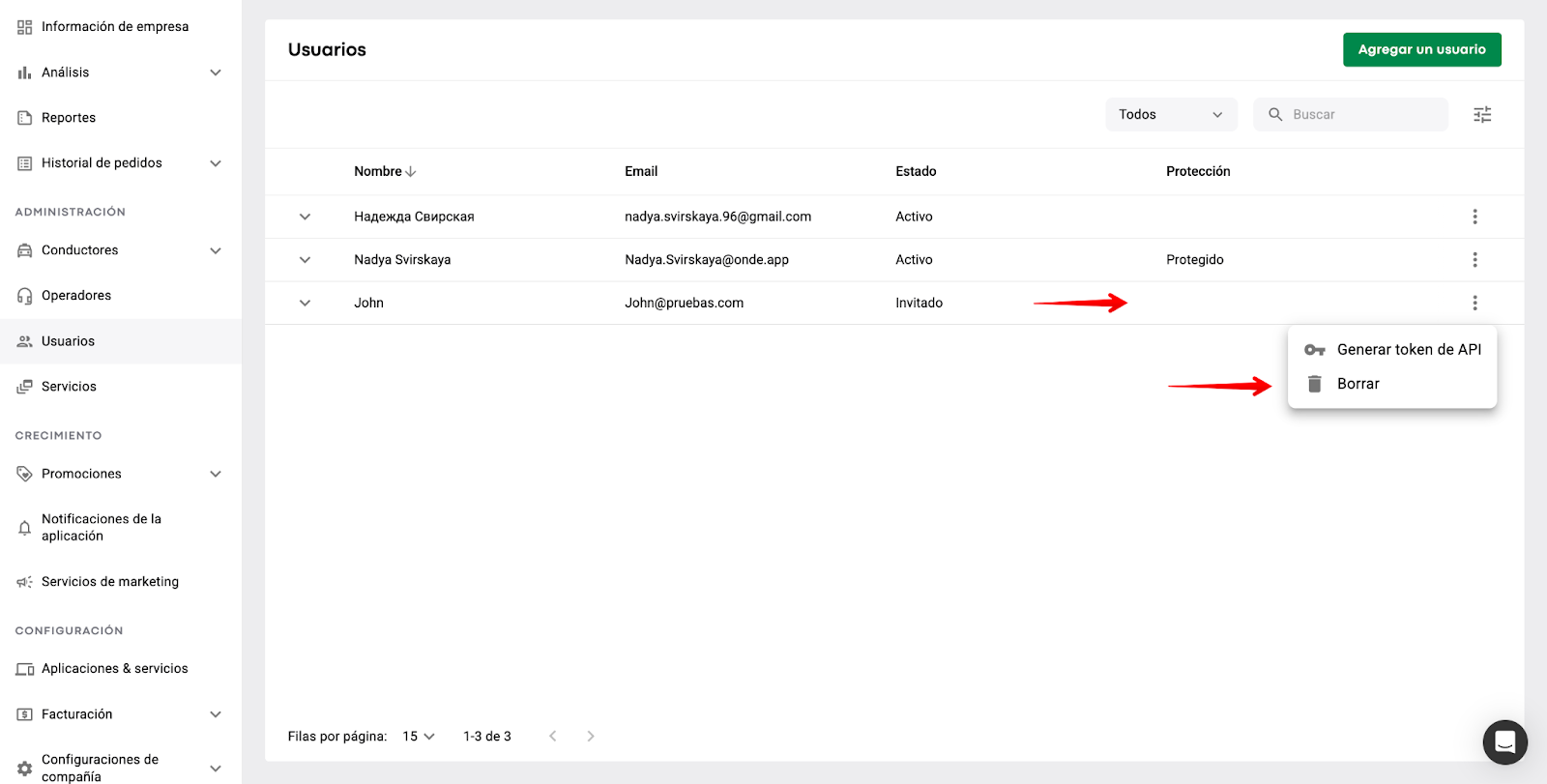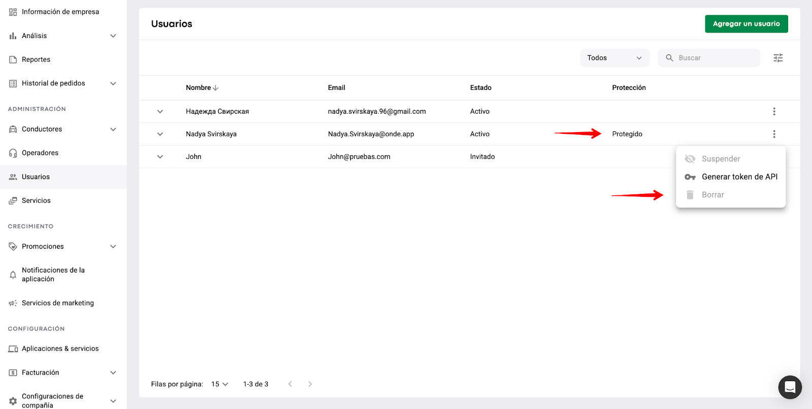 añadir más managers de marca: pestaña "Administración de usuarios" > "Agregar un usuario" > invitar a un nuevo manager de Marca
