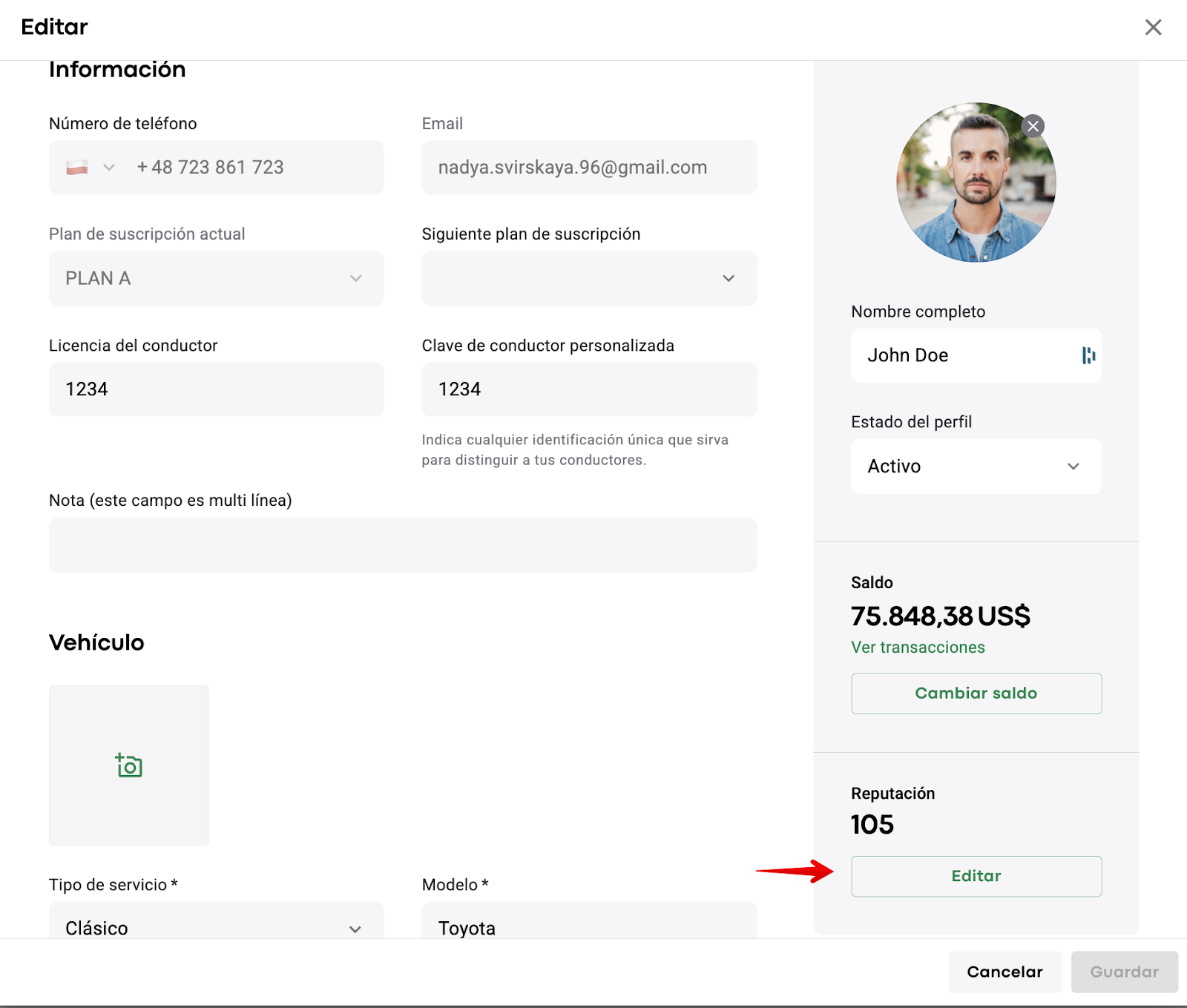 1. Para cambiar temporalmente la reputación de un conductor: