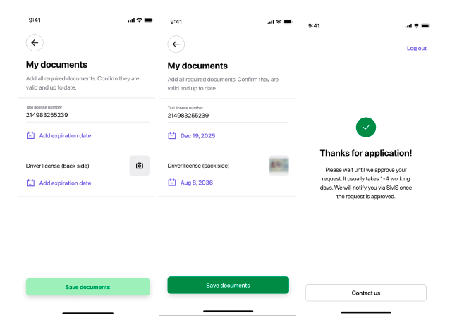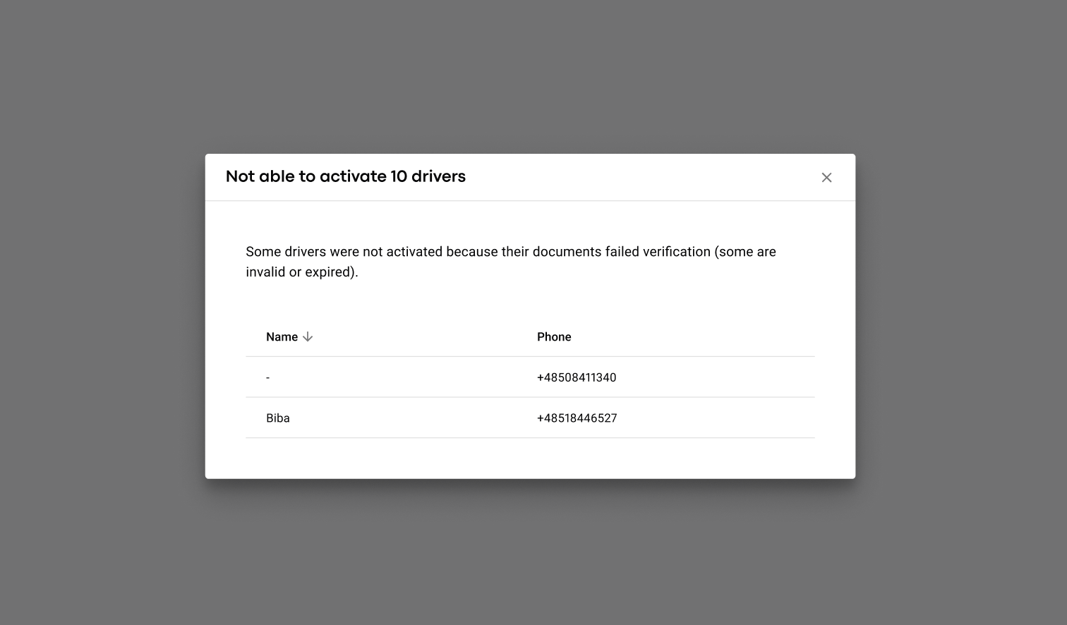 In case at least one driver’s document expires, their “Documents validity” status in My hub changes to “Expired”, and the driver’s profile is deactivated - status changes to “Waiting for activation”.