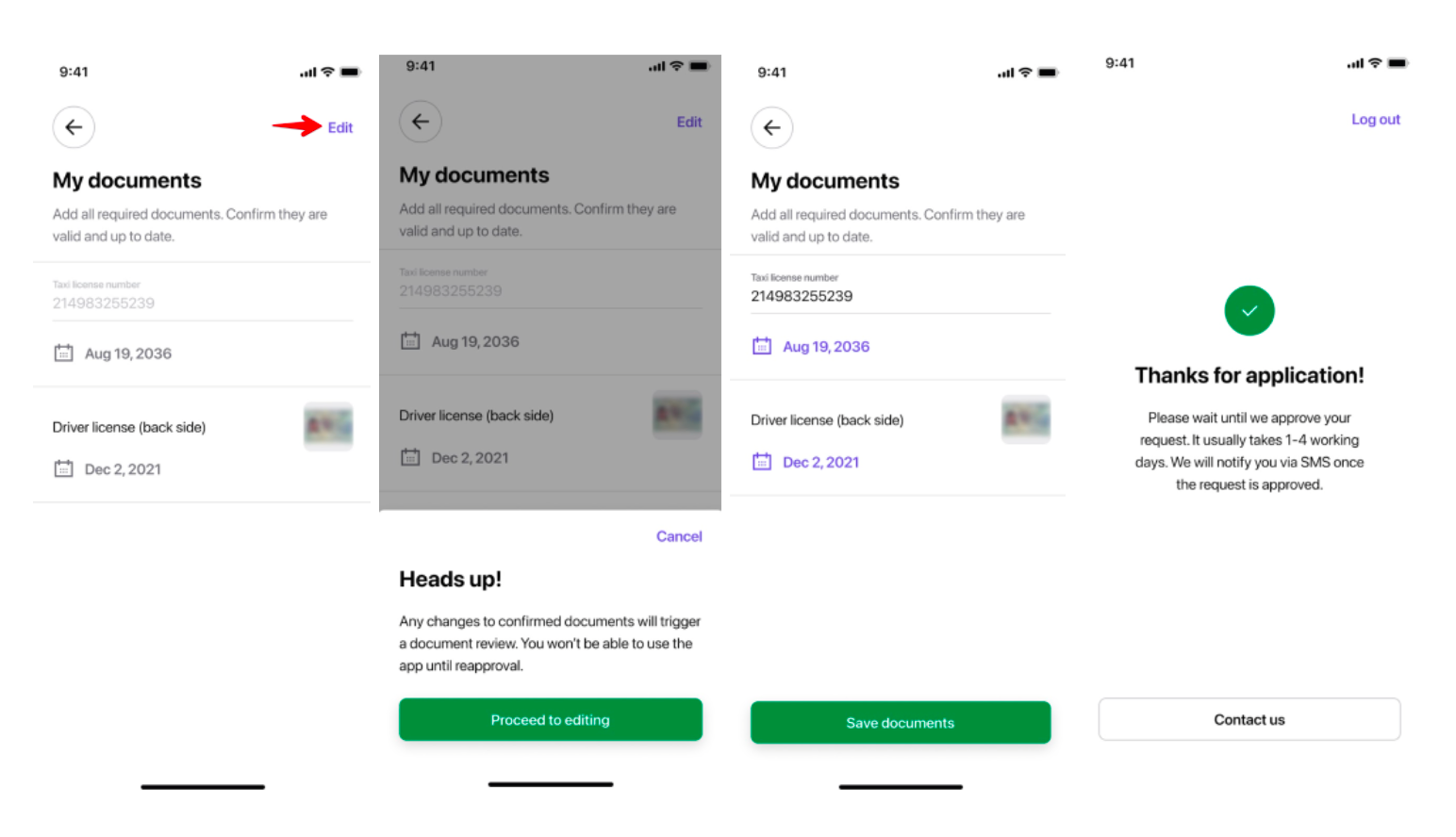 If a driver edits the already approved documents, his “Documents validity” status in My hub changes to “Pending review” and his profile status becomes “Waiting for activation”. So, the company has to review the documents and activate the profile yet again.