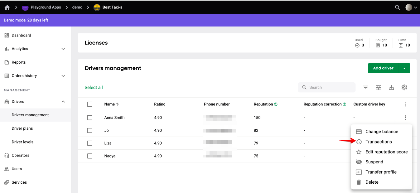 Both the company and the driver have access to all the transactions for the whole period of a driver’s activity.
