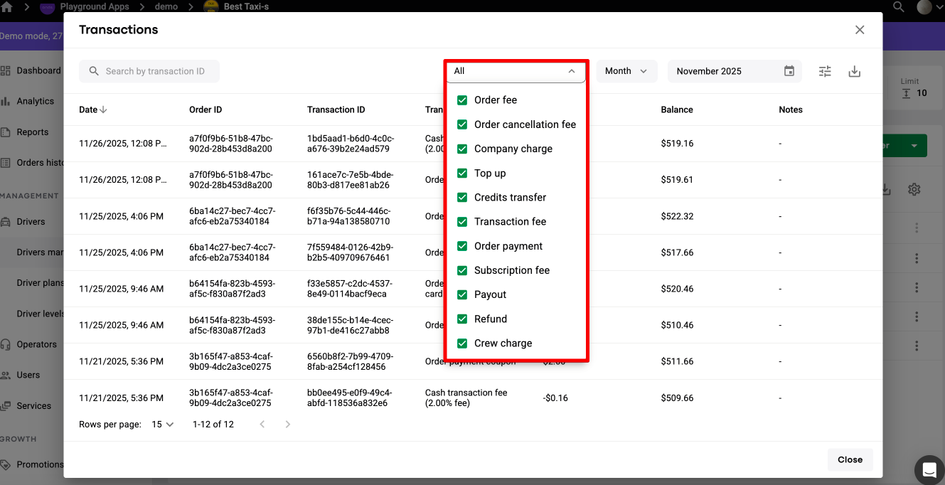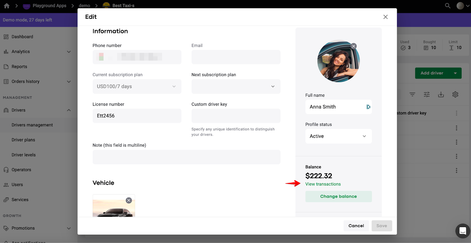 Once a driver is put on a plan with specific commission charges an internal in-app Wallet is created in the app profile. All the registered driver balance transactions are logged in Driver Wallet transactions.