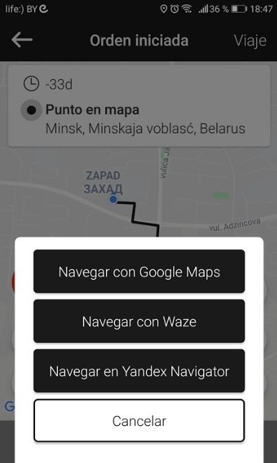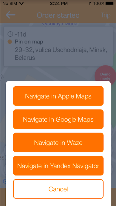 The app remembers the initial choice of the Navigator, a driver selects for his first order and sets it as default.