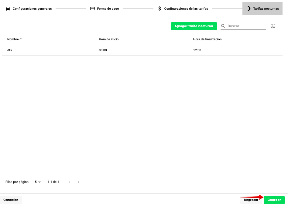 Finalmente, toca “Agregar tarifa nocturna” para que la tarifa se active.