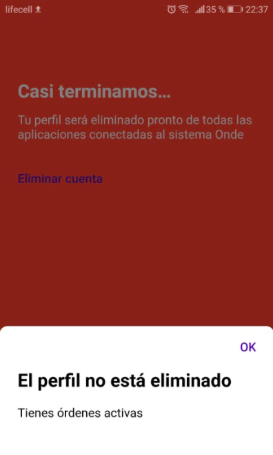 Esto está aclarado en la notificación "Tu perfil será borrado pronto de todas las aplicaciones conectadas al sistema Onde".