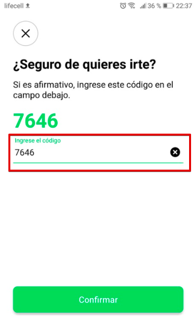 El siguiente paso es ingresar el OTP recibido y presionar "Confirmar".