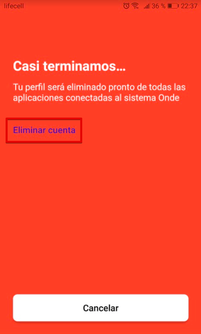 Una vez hecho esto, todos los datos conectados con esta cuenta se eliminan de la base de datos de Onde.