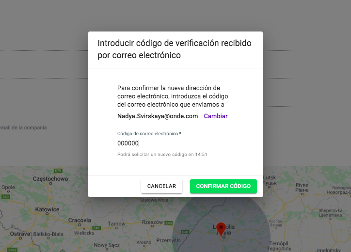 -el código de verificación del correo electrónico se envía al nuevo correo electrónico