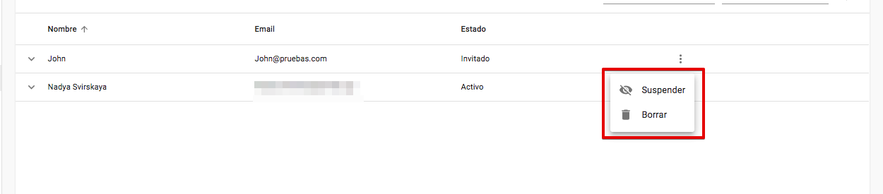 4. Sólo los managers con Acceso Total pueden suspender y eliminar otros usuarios.