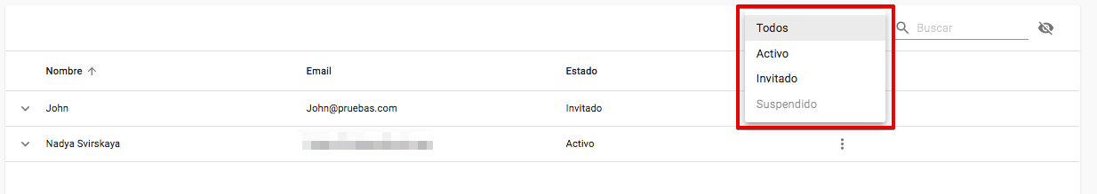 En esta etapa, el estado de ese usuario en la pestaña Usuarios cambia de Invitado a Activo.